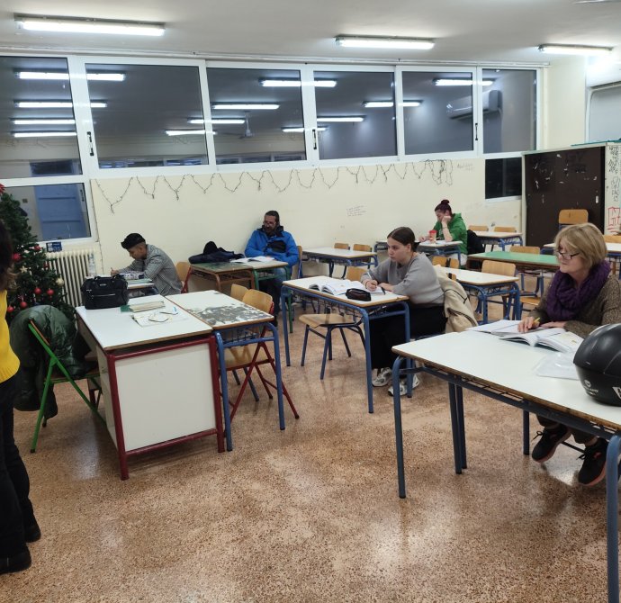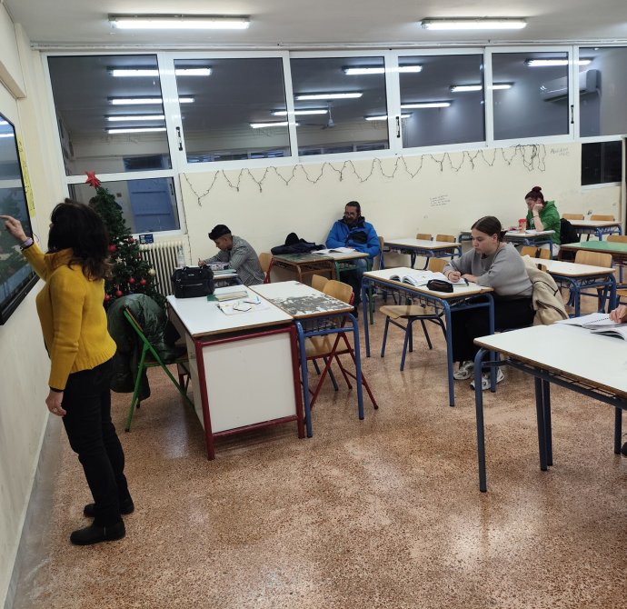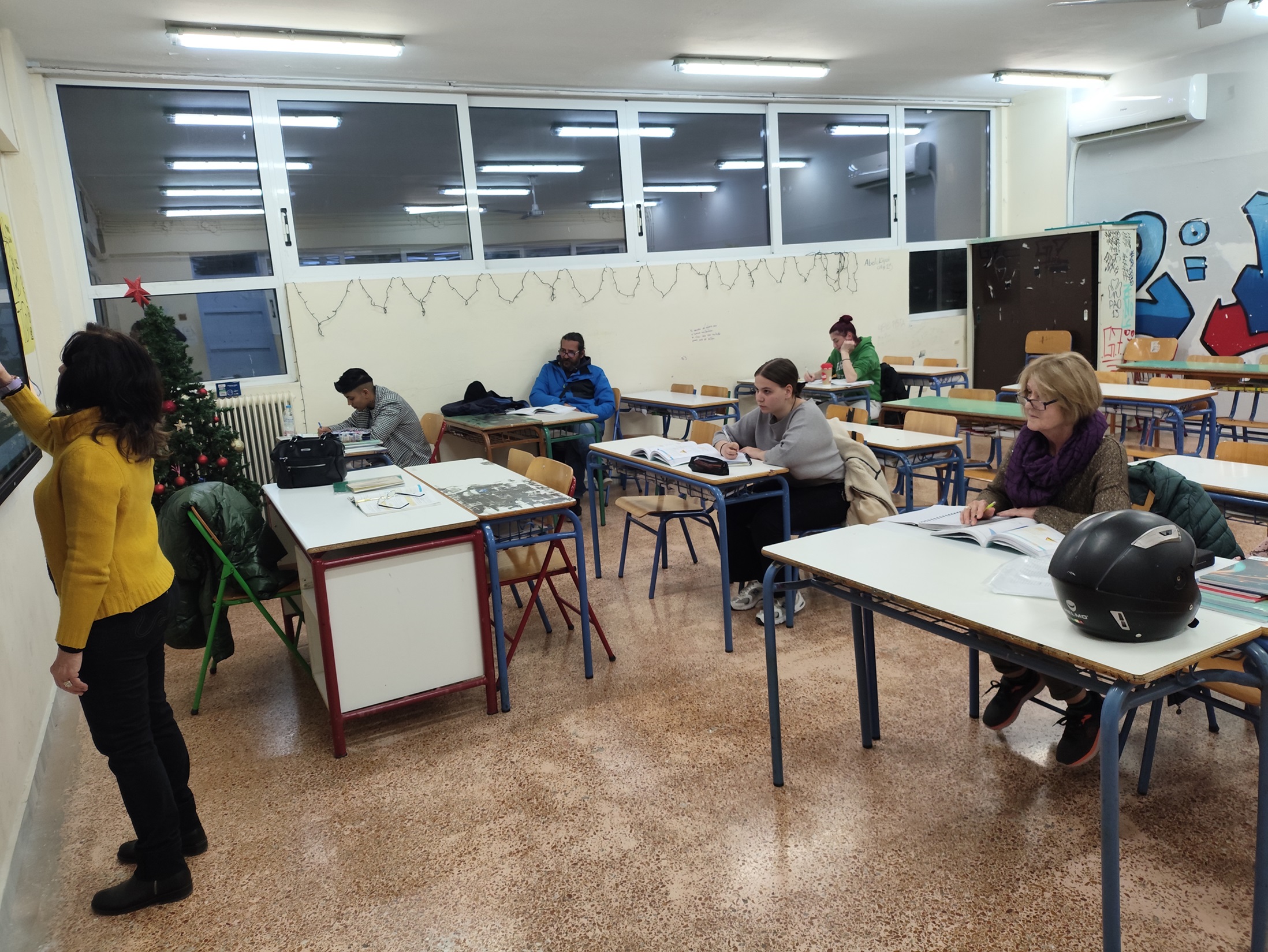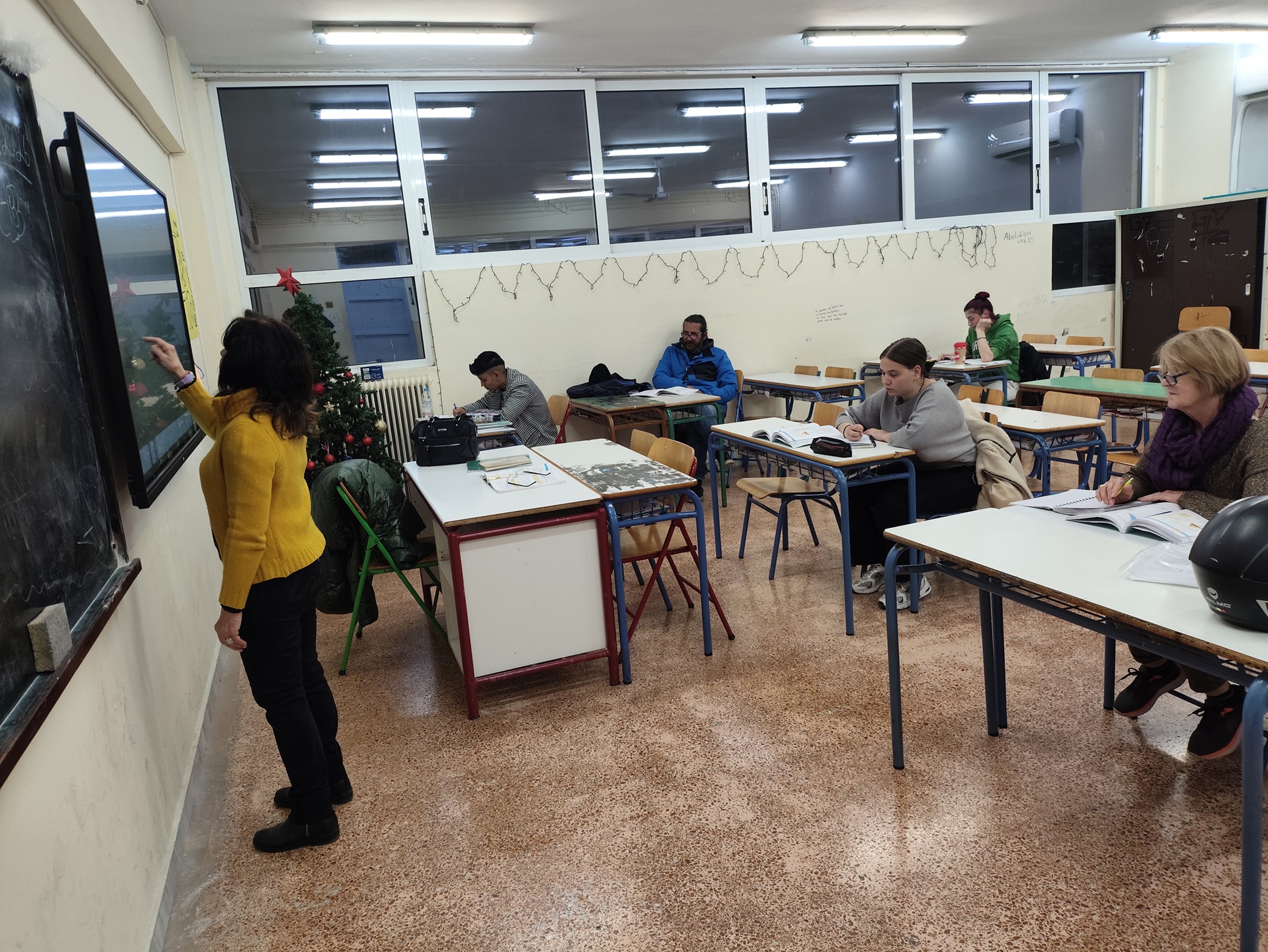- Μεγάλο μέρος της επίσκεψης αποτέλεσε η παρακολούθηση μαθημάτων στο σχολείο (πληροφορική, αγγλικά, μαθηματικά, φυσική, βιολογία, γλώσσα, αρχαία, θρησκευτικά κ.α.). Κατά τη διάρκεια της παρακολούθησης έγινε καταγραφή του τρόπου διδασκαλίας αλλά και της προσέγγισης των ενηλικών μαθητών από τους εκπαιδευτικούς του σχολείου φιλοξενίας.